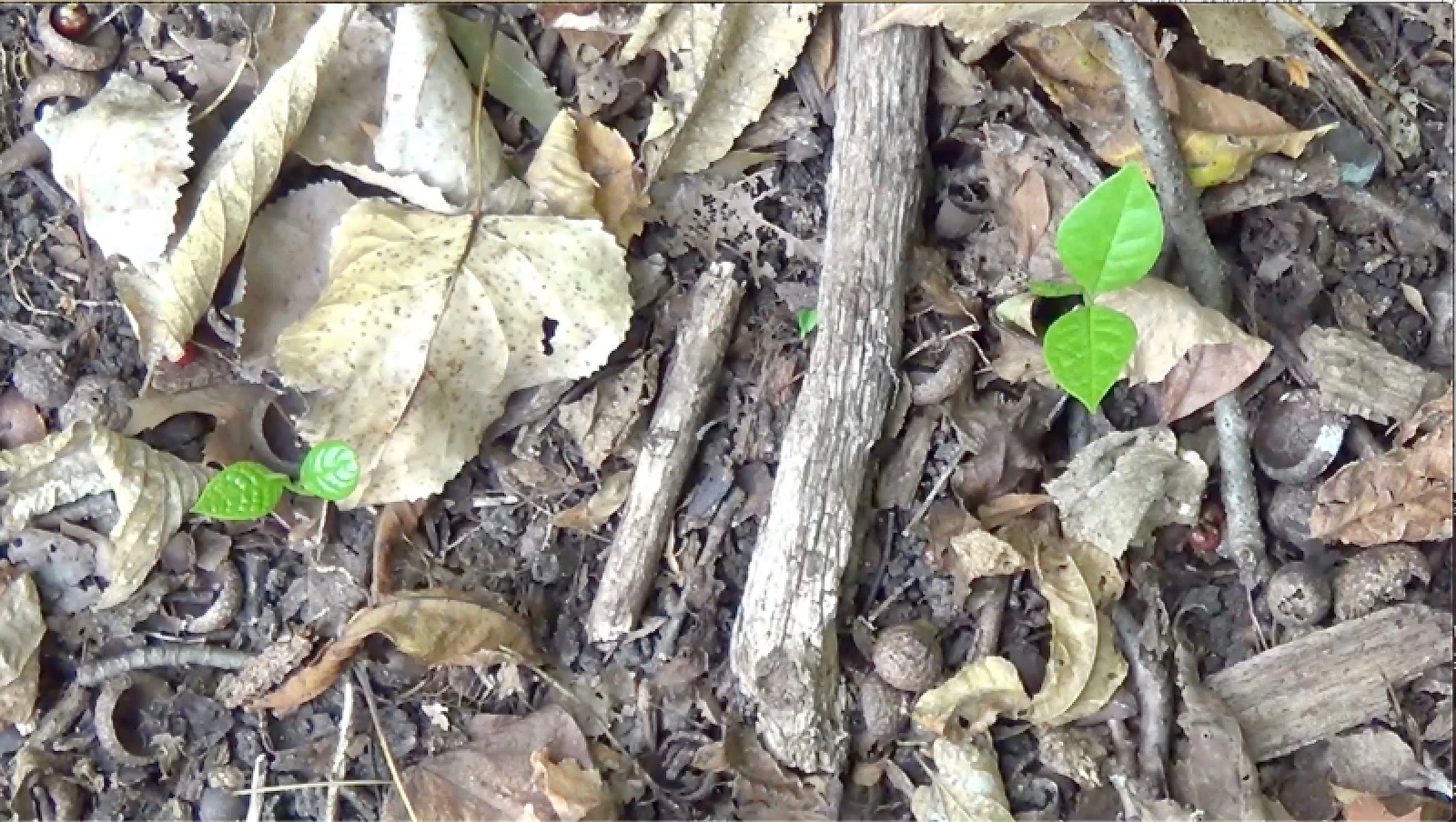 Indeed, when Connie planted the first set of seeds in the "Old River Patch" in 2022, there was no deer trail through it. But one developed since then, and in August 2025 she noticed a newly emerged seedling from that episode that was just a foot off to the side of that trail.