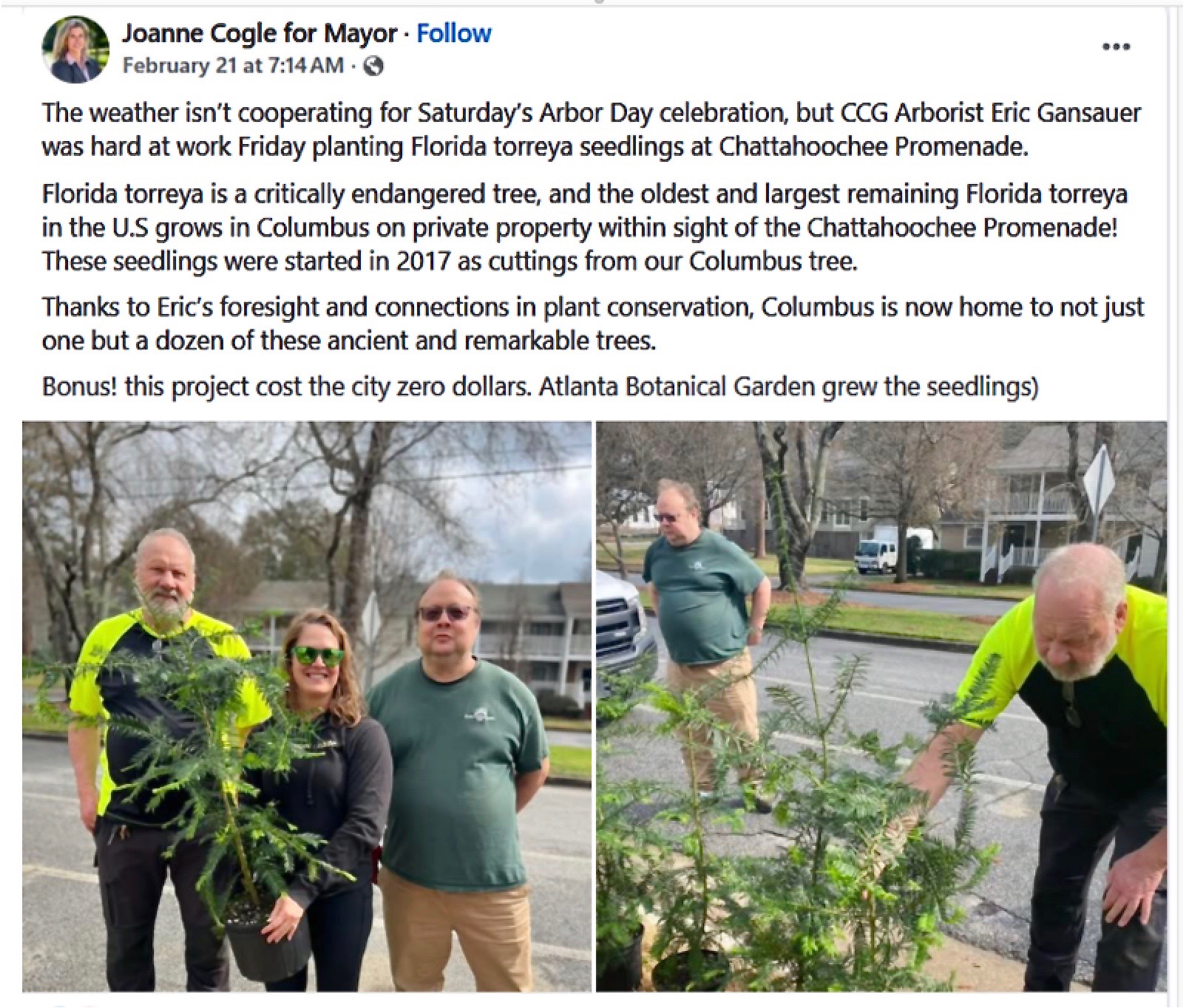 • Leigh Brooks emailed Torreya Guardians this correspondence from her colleague, Jerry Adams from Bainbridge GA, in May 2009: