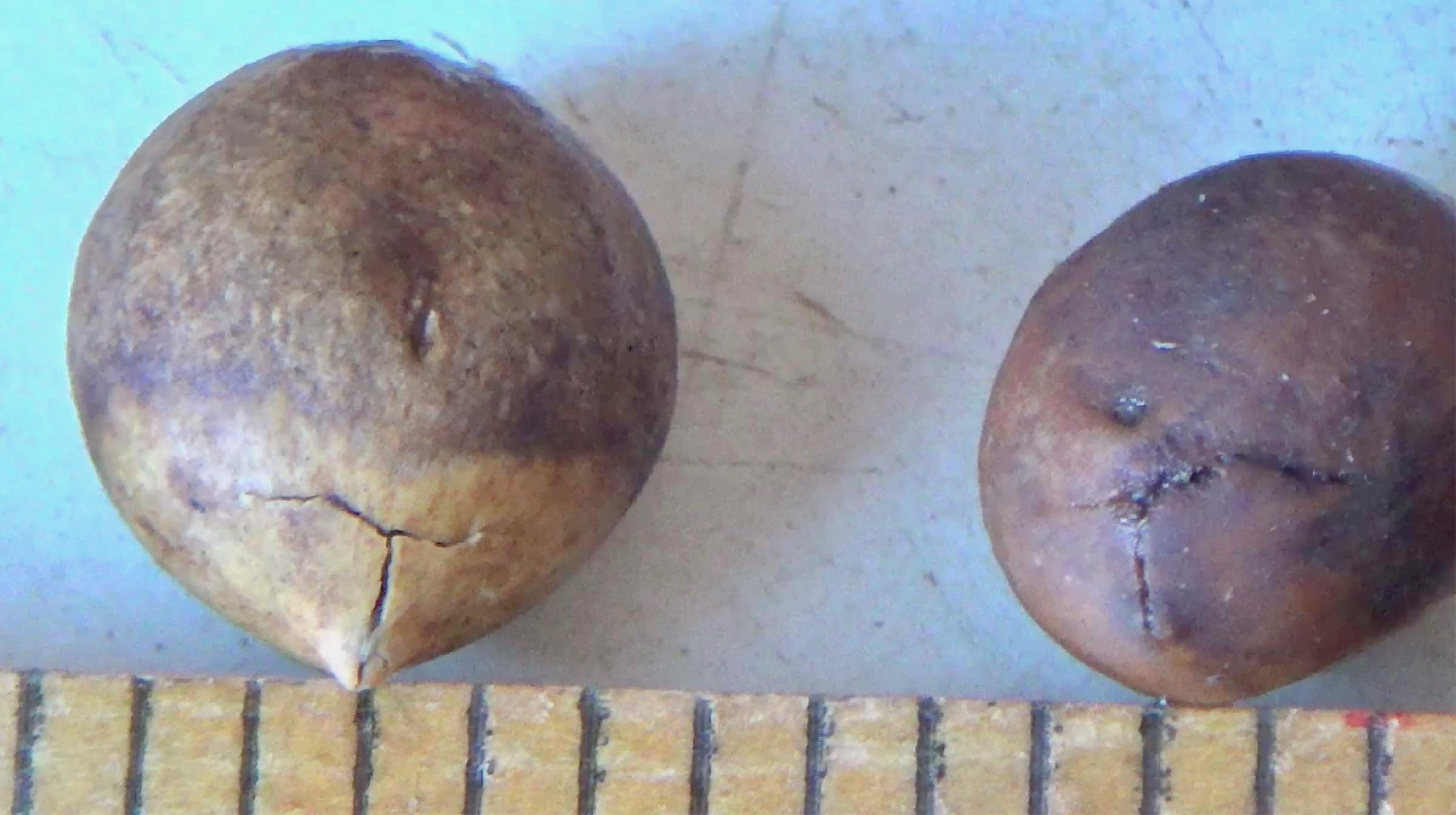 LEFT: This seedling has emerged during its second summer in a rodent-protected germination bed within a semi-shaded forest setting. Before the above-ground growth became visible, the food energy and nutrients stored in the large seed supported growth of a taproot and some lateral roots, while encouraging symbiotic fungal partners to create the root hairs by feeding them food stores, too.