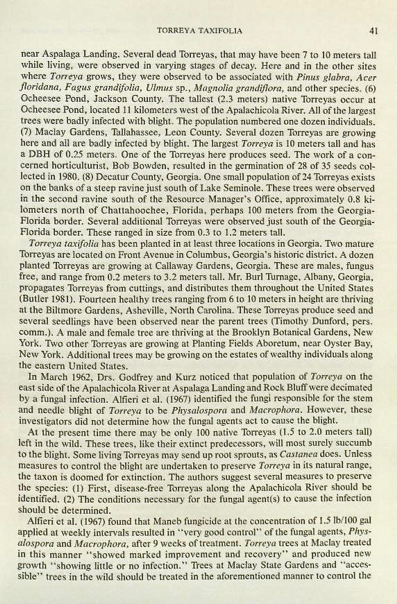 Note: Four unpublished papers by Lee Barnes and his doctoral dissertation are in the "Literature cited" list of the 1986 "Florida Torreya Recovery Plan.