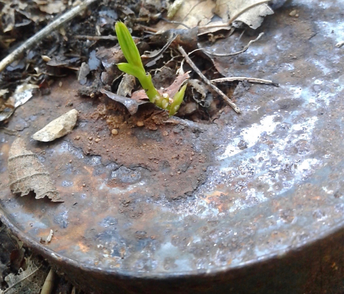 This photo thus documents that some seeds may take 4 winter stratifications (rather than the usual 2 or 3) before any growth shows above ground.