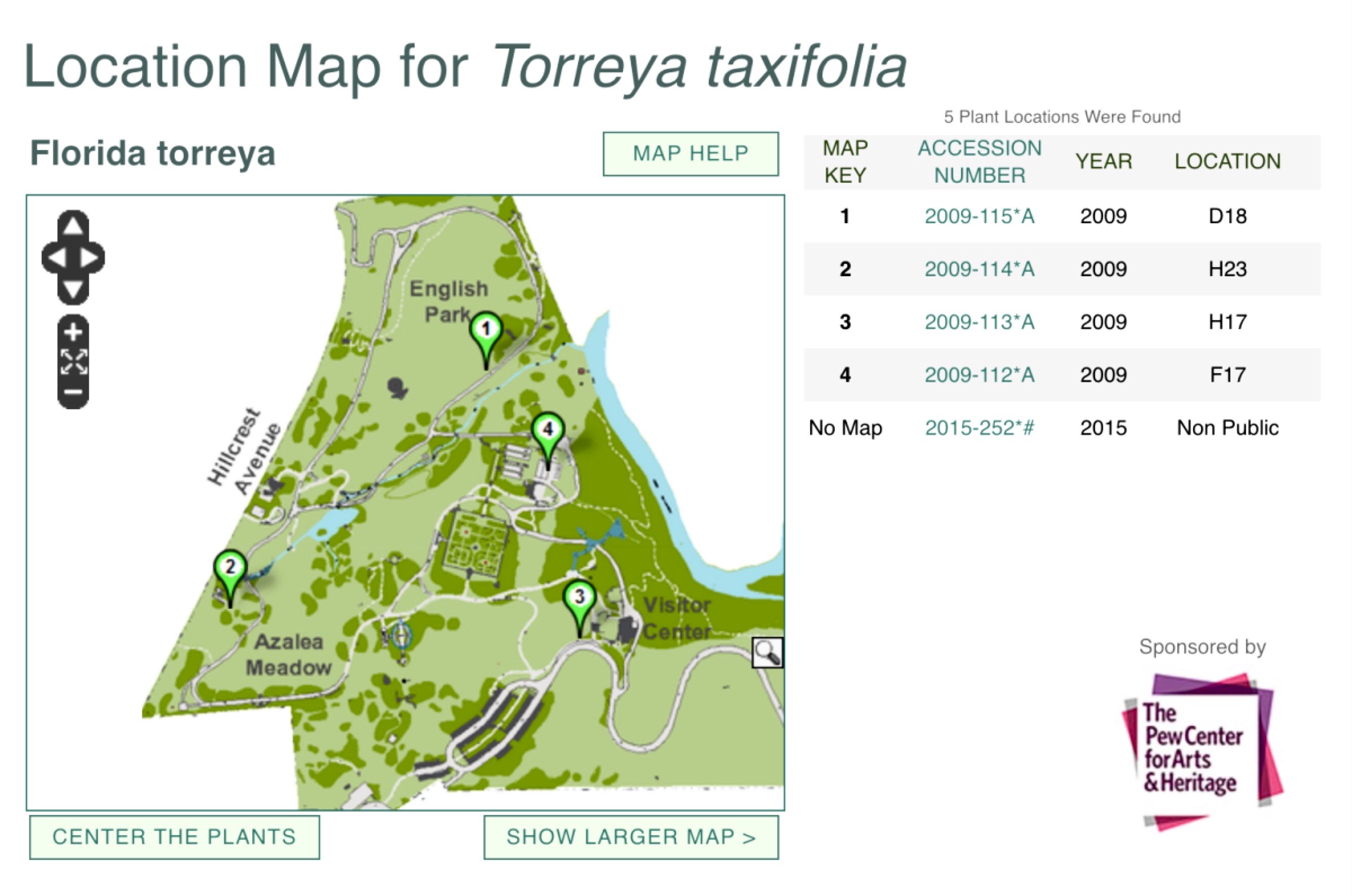 • Morris Arboretum (Philadelphia); affiliated with the University of Pennsylvania ABOVE: Image of locations of Florida Torreya at Morris Arboretum. Visit the Torreya Guardians MORRIS ARBORETUM page (information rich).This led to: