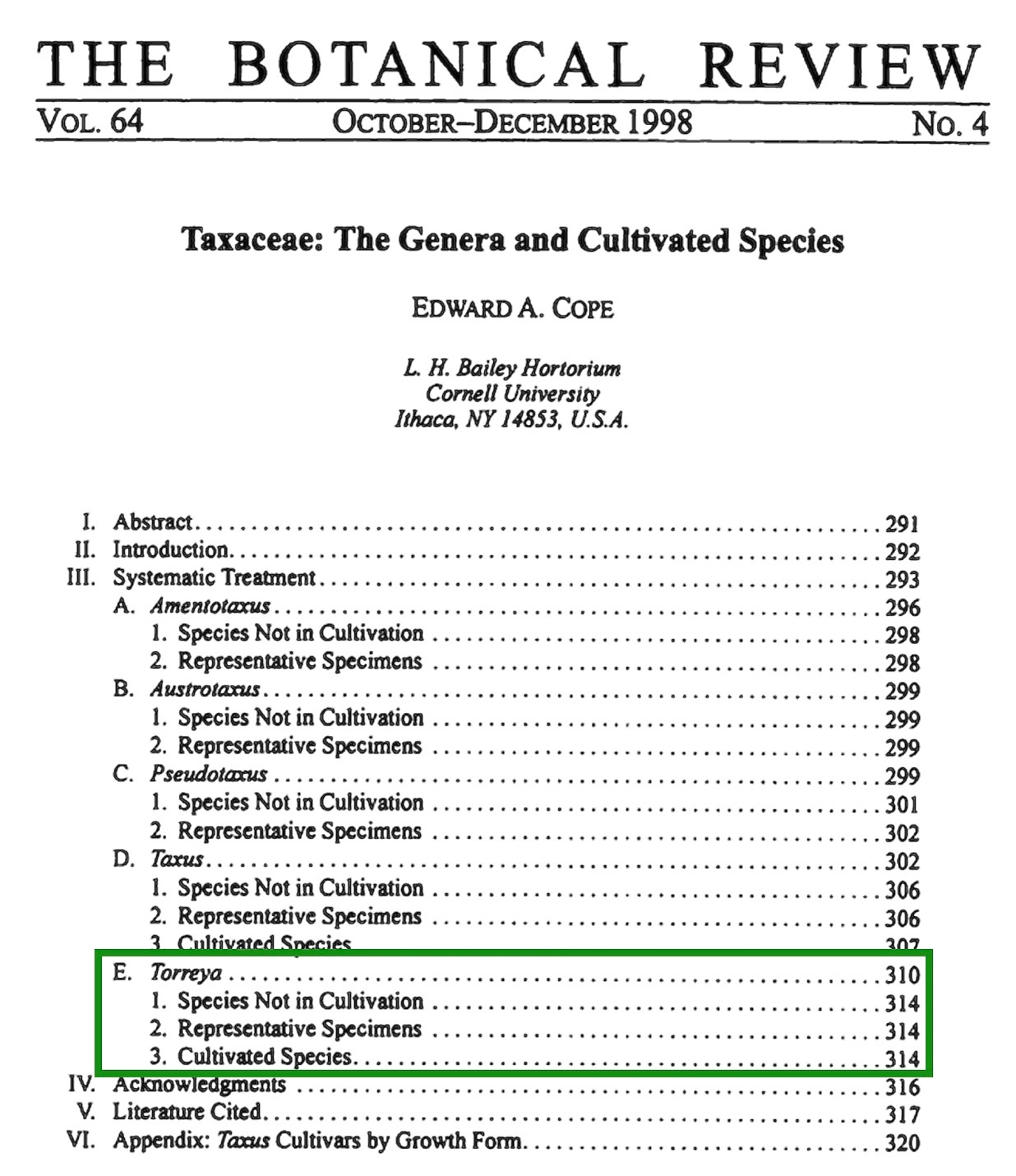 Three articles (1905, 1905, 1945) present Florida Torreya as