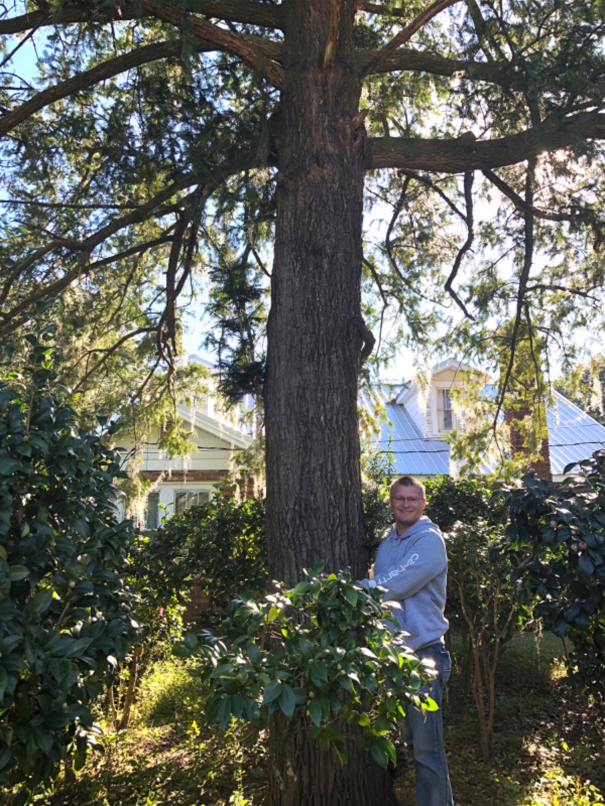 "I recently traveled to FL and picked up several very nice nursery grown Torreya plants, and brought them back to Louisiana. Currently I am working for the McIlhenny Company on Avery Island (home of Tabasco pepper sauce) as their first botanist, and I hope to establish a grove of Torreyas this fall in Jungle Gardens."Following his 11 October 2019 visit to the Torreya tree in Madison FL he wrote,"I went to visit the Torreya in Madison and had a grand time. Do you know how old it might be?" I bought more Torreyas to plant in the forest of Jungle Gardens on Avery Island. Those I planted a year ago are thriving and have grown nicely, so I purchased some very nice large ones at a local nursery in Tallahassee and plan to plant them shortly in the same area to create a grove.More photos of Garrie's visit to the Madison tree below.