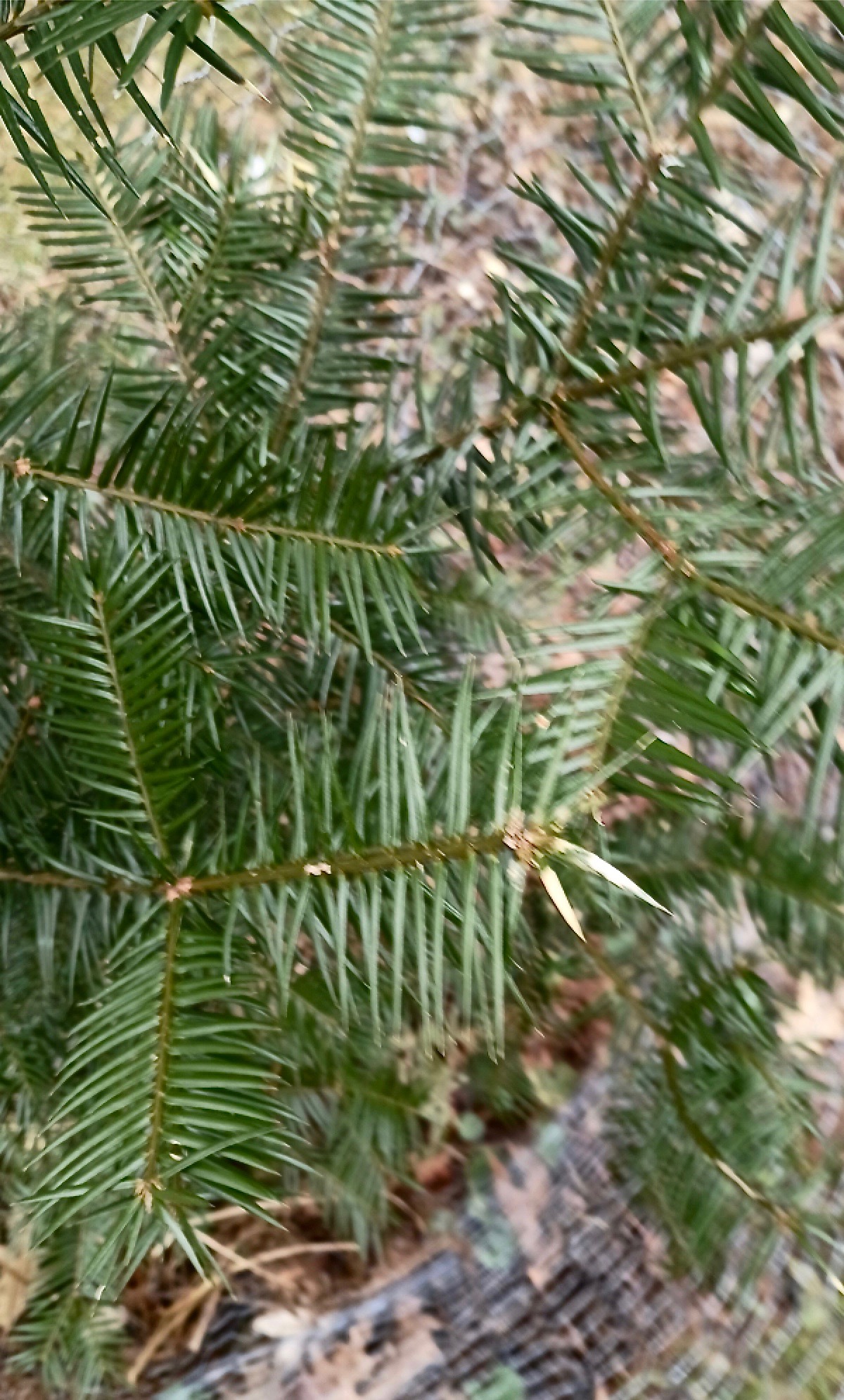 ABOVE RIGHT: Paul Camire in southeastern MICHIGAN took this photo of his single FLORIDA YEW in April 2025. No winter kill. More surprising is that he had planted this potted seedling during a warm spell in January 2024 and then, too, it came through with no injuries.