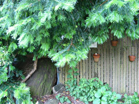 PHOTO 4a & 4b: A fruit-bearing giant female Torreya, growing well in a highly disturbed habitat in the Swanton Station compound.