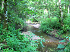 along the main course of Scotts Creek(undeveloped, except for paved road and an old logging road on opposite side of the creek)